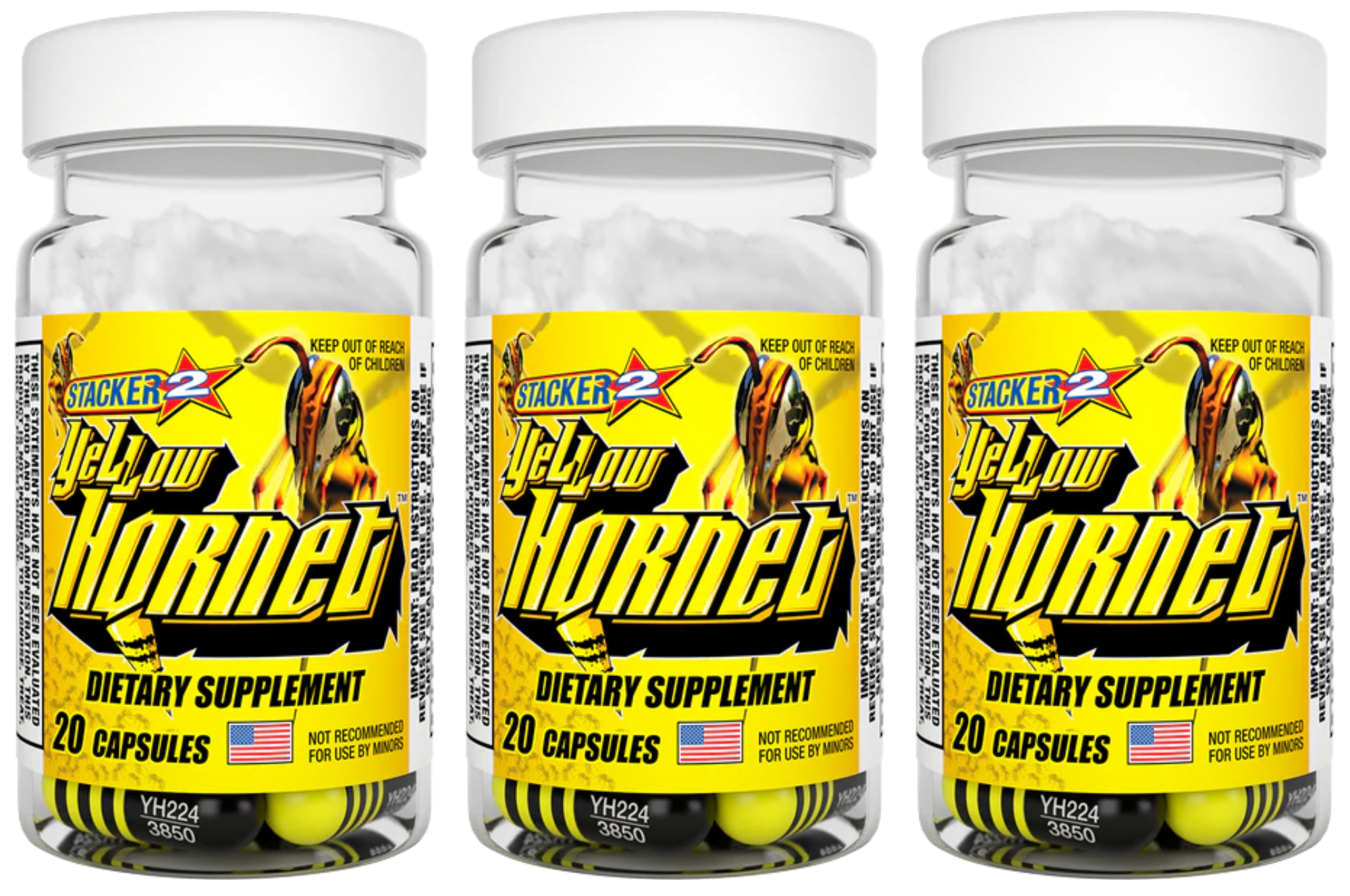 Stacker 2 Yellow Hornet Extreme Energizer Capsules, 20 Ct Bottle, Ephedra-Free High-Performance Energy & Metabolism Support, 300MG Caffeine per Capsule!