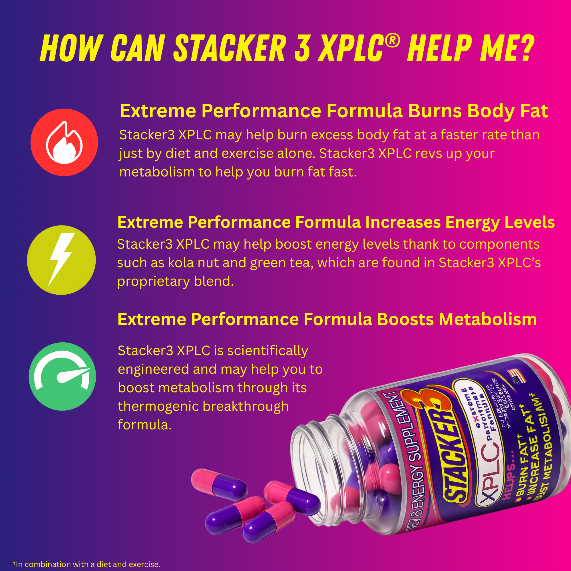 Stacker 3 XPLC Extreme Performance Fat Burner Capsules, 80 Ct Bottle – Ephedra-Free Energy & Metabolism Support